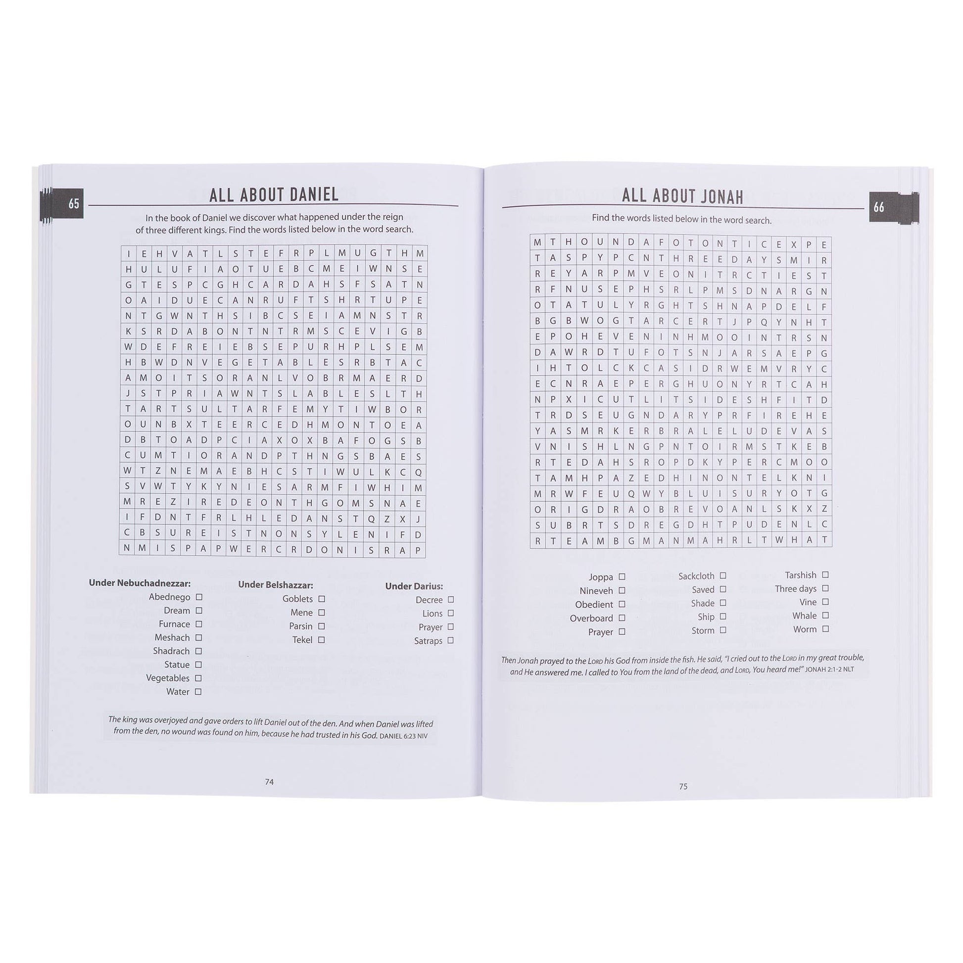Bible Word Searches features 100 fun and fascinating word searches that range from easy to tricky and cover biblical topics from Genesis to Revelation—the perfect entertainment for a quiet evening at home or screen-free activity for kids. Gray red and white cover design, Softcover, 100 word searches, Scripture verse on every page, Additional trivia questions, Solutions in the back, One-color interior, 128 pages, Size: 10.2" x 7.3" x .3" (259 x 185 x 8mm)