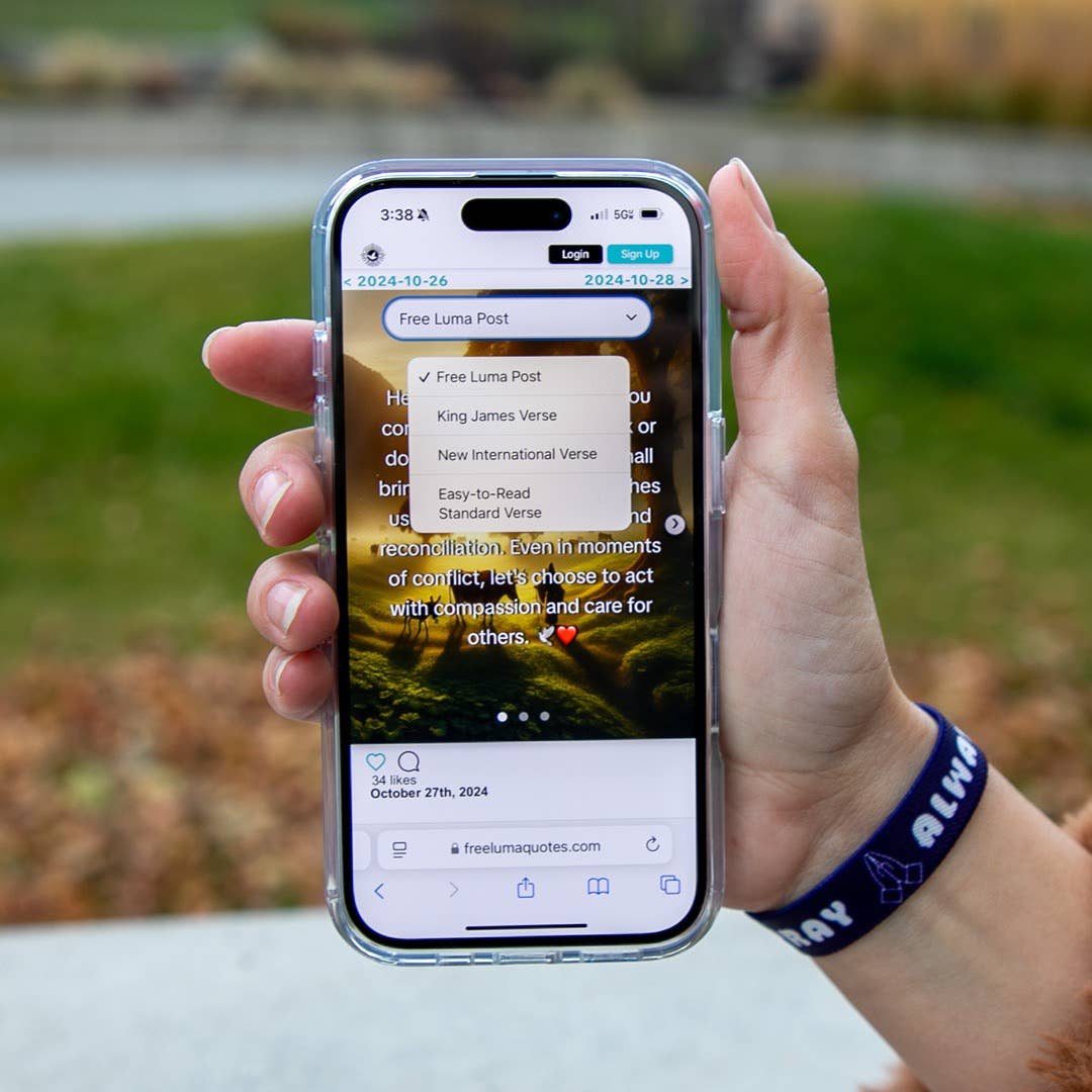 Find peace and guidance with our "Pray Always" bracelet. This elegant piece serves as a daily reminder to stay connected with God through prayer. More than just an accessory, it's a spiritual tool to help you nurture your faith. Simply place your smartphone on the Free Luma logo to receive your daily Christian-inspired message based on a new Bible verse each day, offering comfort and strength in your spiritual journey.
