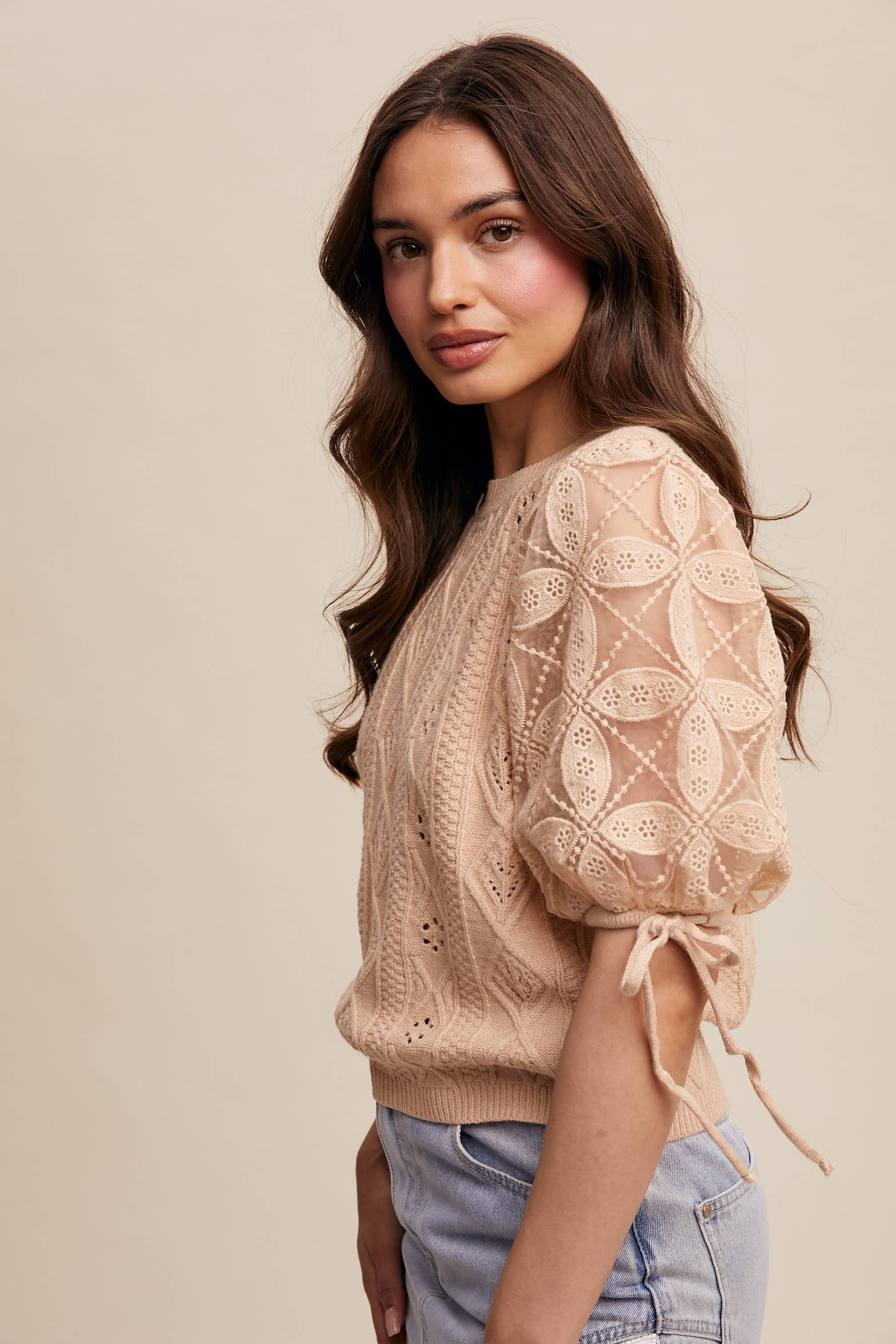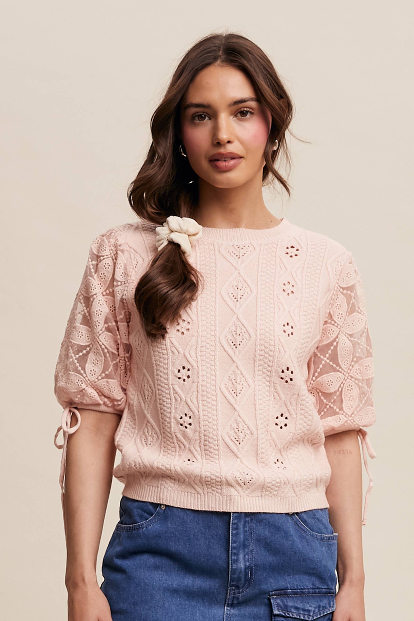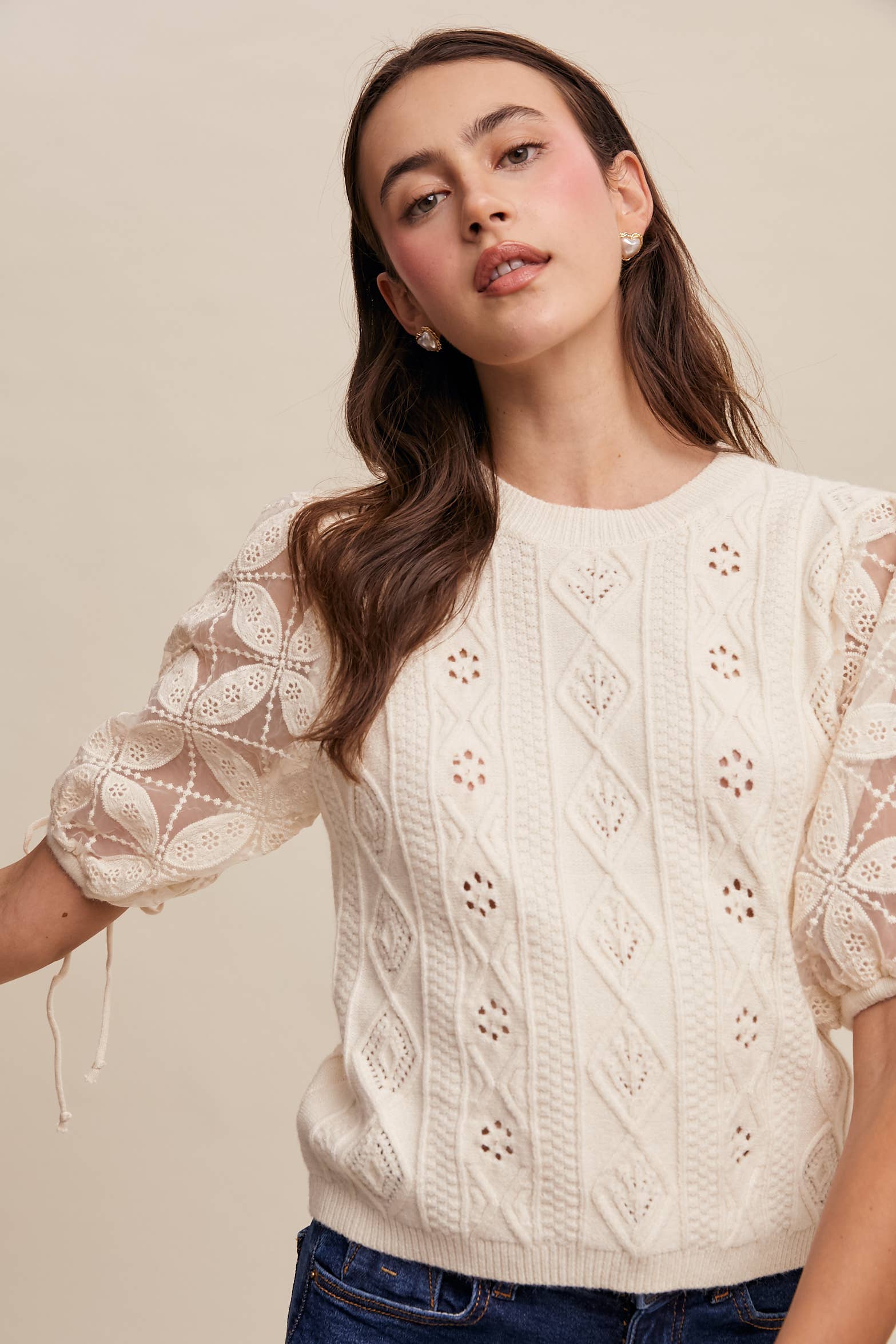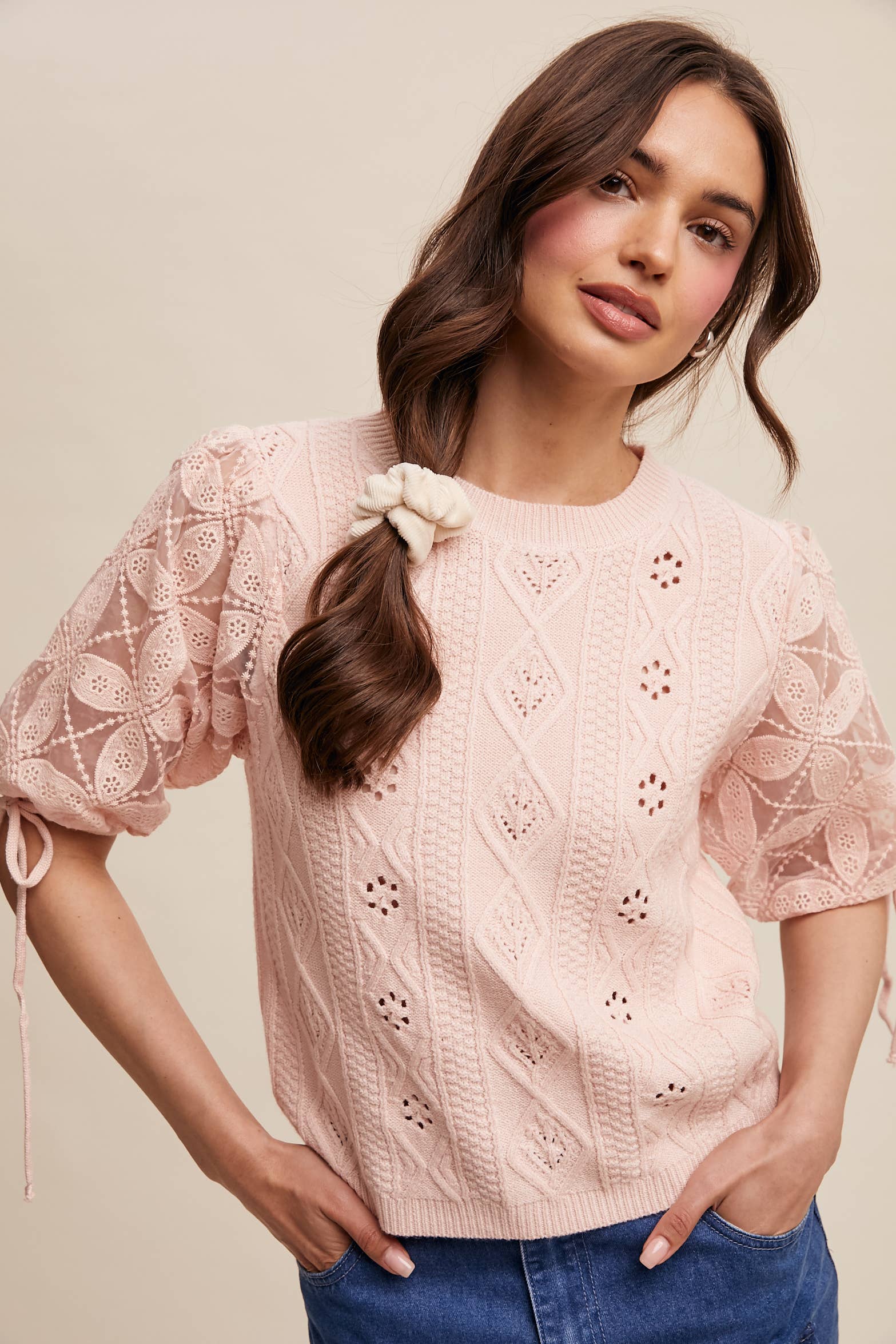 Listicle - Eyelet Puff Sleeve Knit Sweater Top