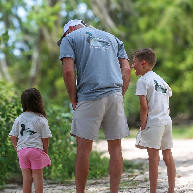 Crafted from 100% fine jersey cotton, it’s lightweight, breathable, and perfect for everything from weekend hunts to everyday wear. Available in youth sizes YXS–YL, with matching styles also offered in men’s and women’s sizes (Graphite) and kids sizes 6M- 5/6, so the whole family can rep their roots.