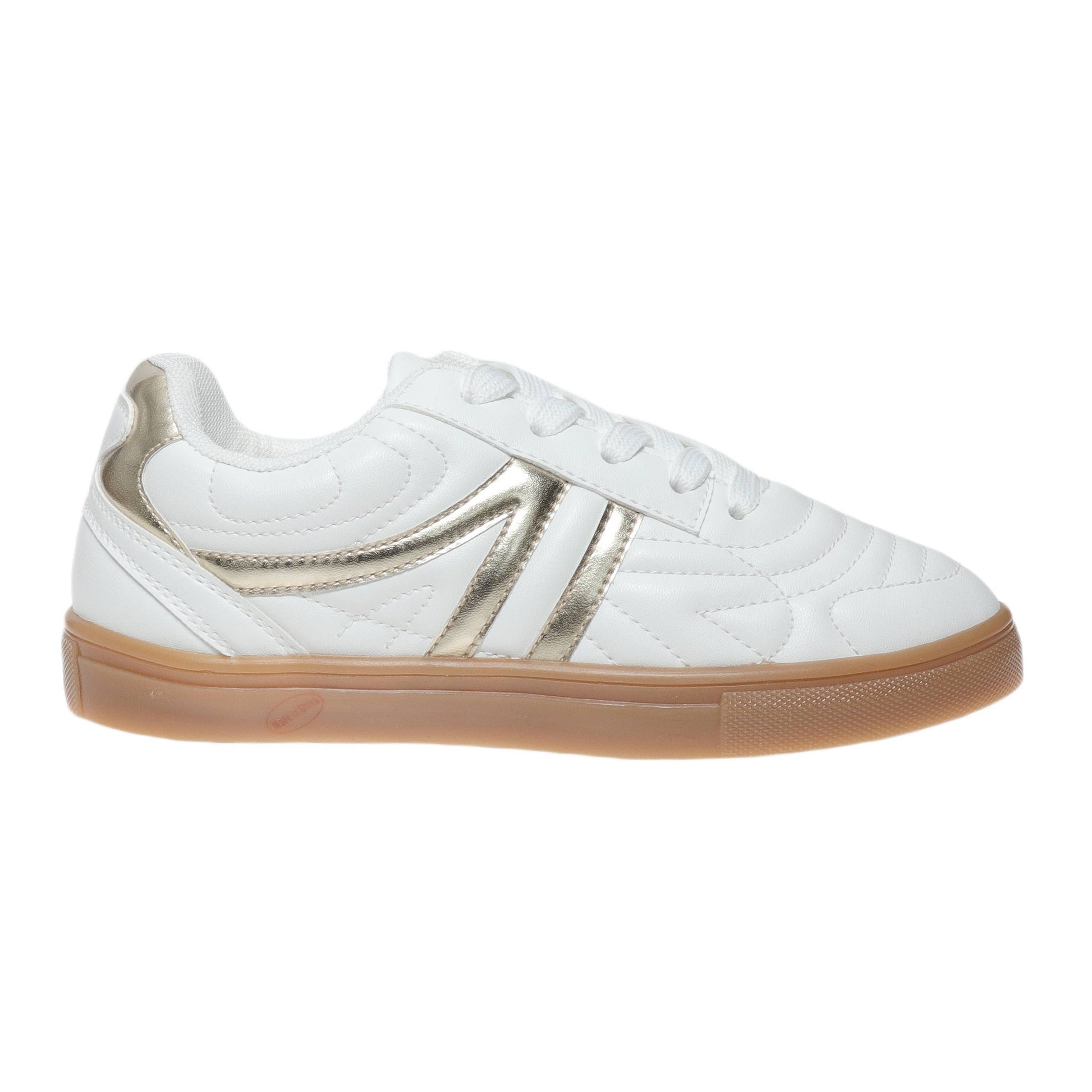 Add a touch of sparkle to your child’s steps with the Pierre Dumas Outwoods Kids sneakers. Featuring a stylish white and gold finish, these shoes combine playful charm with everyday comfort. Perfect for active kids, they provide reliable support and a cute look that stands out during playtime or casual outings. Give your little one a fun, trendy sneaker they’ll love to wear all day.