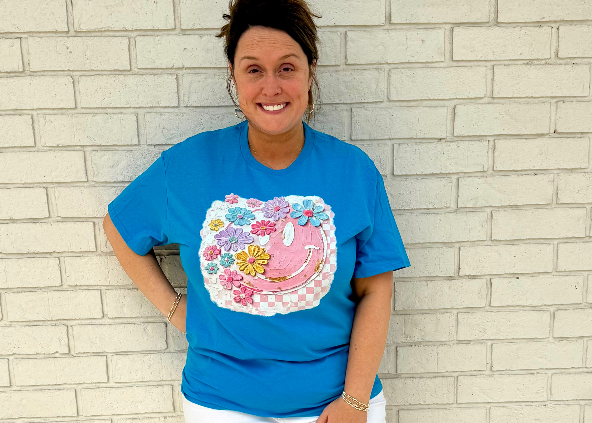 Pink Smiley Face DTF Shirt