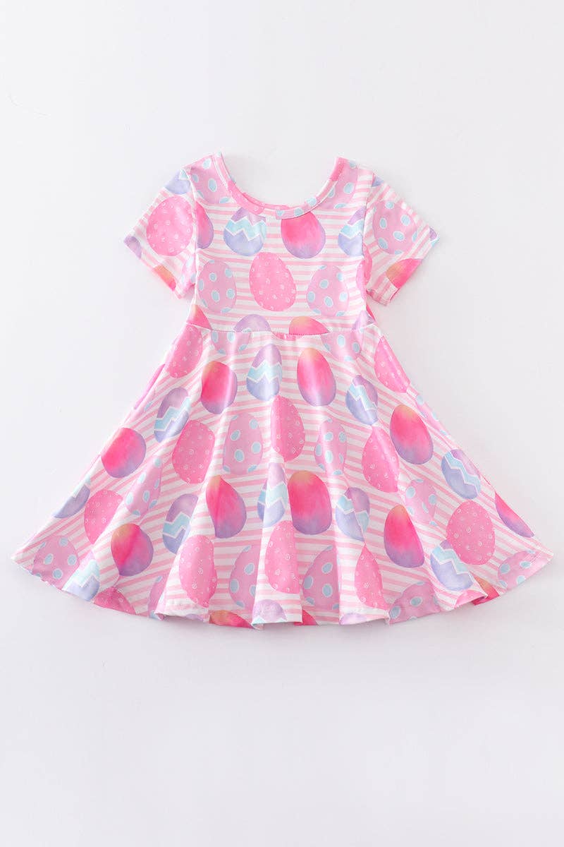 Rylee Faith Designs - Pink Striped Egg Print Twirl Dress