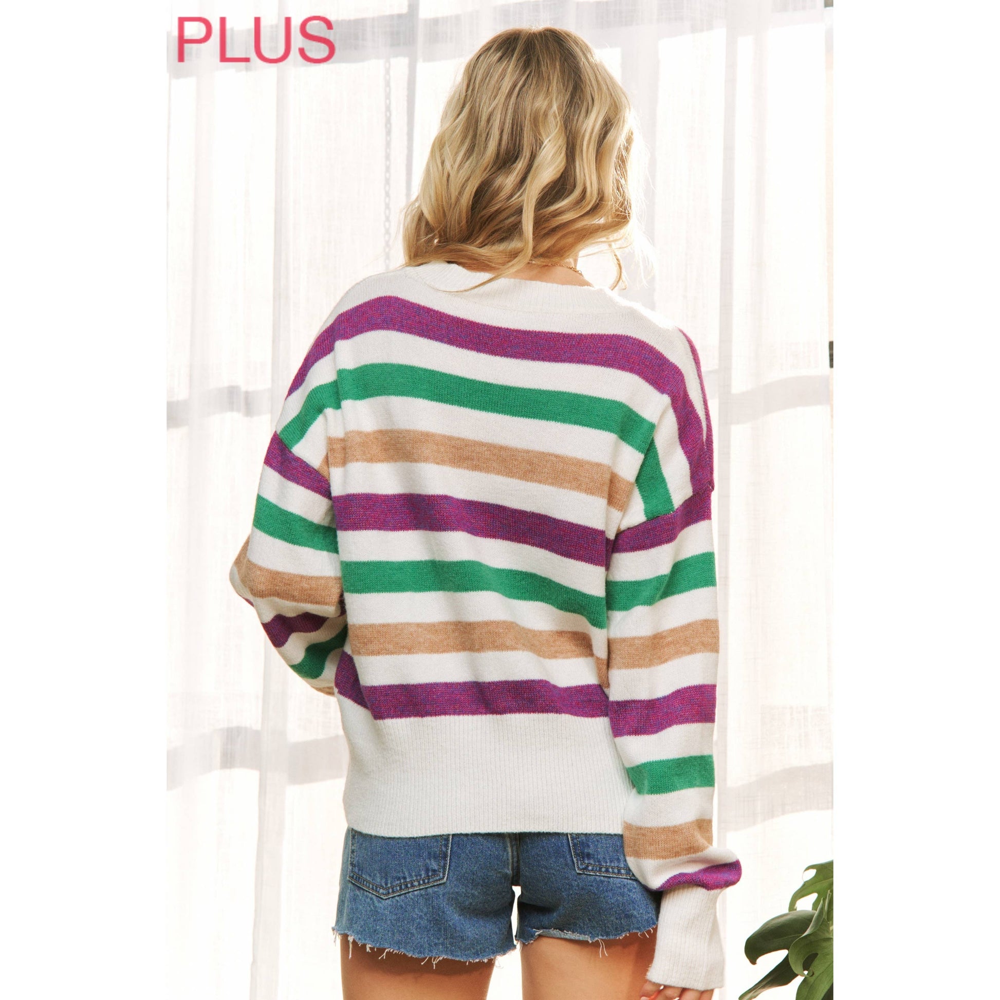 PLUS CLASSIC COLORFUL STRIPE RELAXED FIT PULLOVER TOP